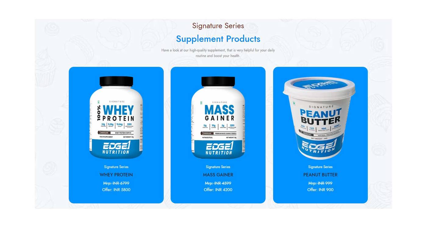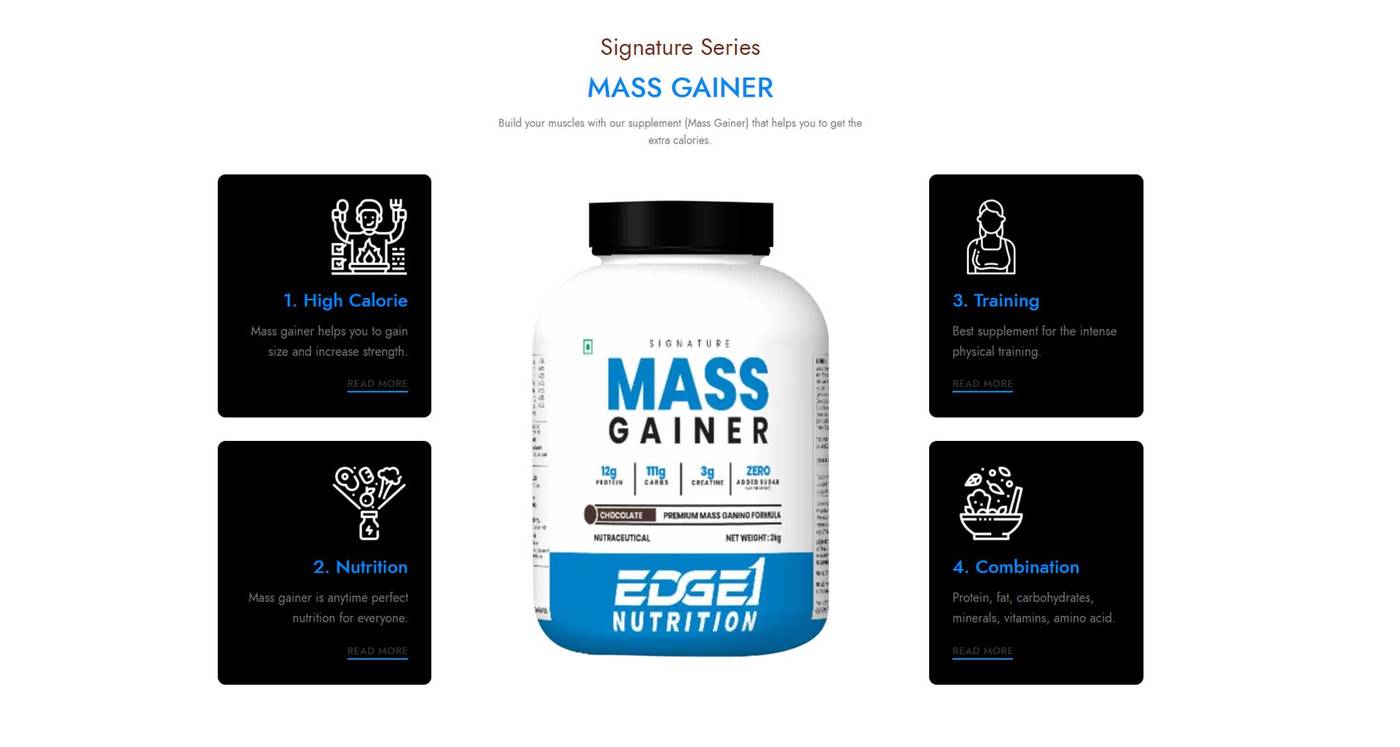 EDGE1 NUTRITION offers best quality nutritional supplements. EDGE1 NUTRITION offers quality nutritional supplements like Whey Protein, Mass Gainer, BCAA, Fish Oil, Multi Vitamin, Fat Burner, Creatine Monohydrate, Pre Workout and Peanut Butter at affordable Price.