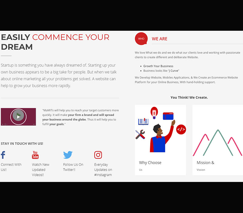 MaMITs is nothing new to anyone. We work under the motto of “You Think, we Create” which means we give wings to your imagination to fly. MaMITs is one of the Best website development company in central India, Madhya Pradesh, Bhopal.